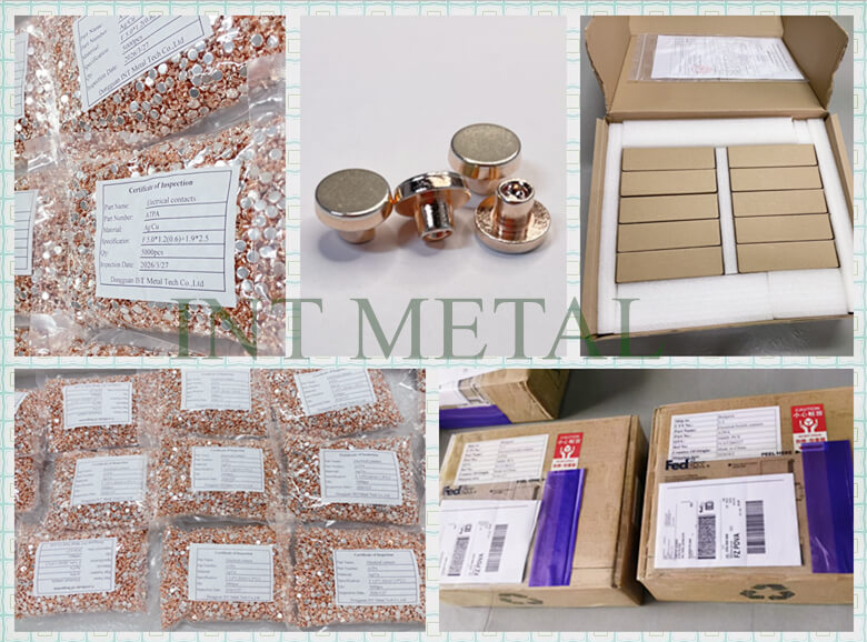 DONGGUAN INT METAL TECH CO LTDTaikomas šaltojo presavimo kompozito (šaltojo apdorojimo) procesas, kurio metu sidabras arba sidabro lydinys sujungiamas su kietu variu, veikiant didžiuliam slėgiui. Šis procesas užtikrina vienodą sidabro sluoksnio storį ir itin aukštą sukibimo stiprumą sidabriniai kontaktaipagaminoINT METALgali garantuoti klientų produktų patikimumą visą gyvenimą.